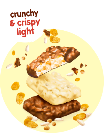 Do you love crunchy snacks? Then you’ll love our new recipe! Our Sun Rice Crunchy range offers you the perfect blend of light puffed rice, crispy cornflakes, and a deliciously smooth milky cream – all coated in the innovative, cocoa-free ChoViva chocolate alternative. Light, crunchy, surprisingly different – this is what makes crunchy fun! The crispy puffed rice comes directly from Italy and is freshly processed with many different crunchy ingredients. Whether as a snack between meals or for real crunch fans – with this mix, no one can decide. Don’t worry, you don’t have to – just bite in and enjoy!